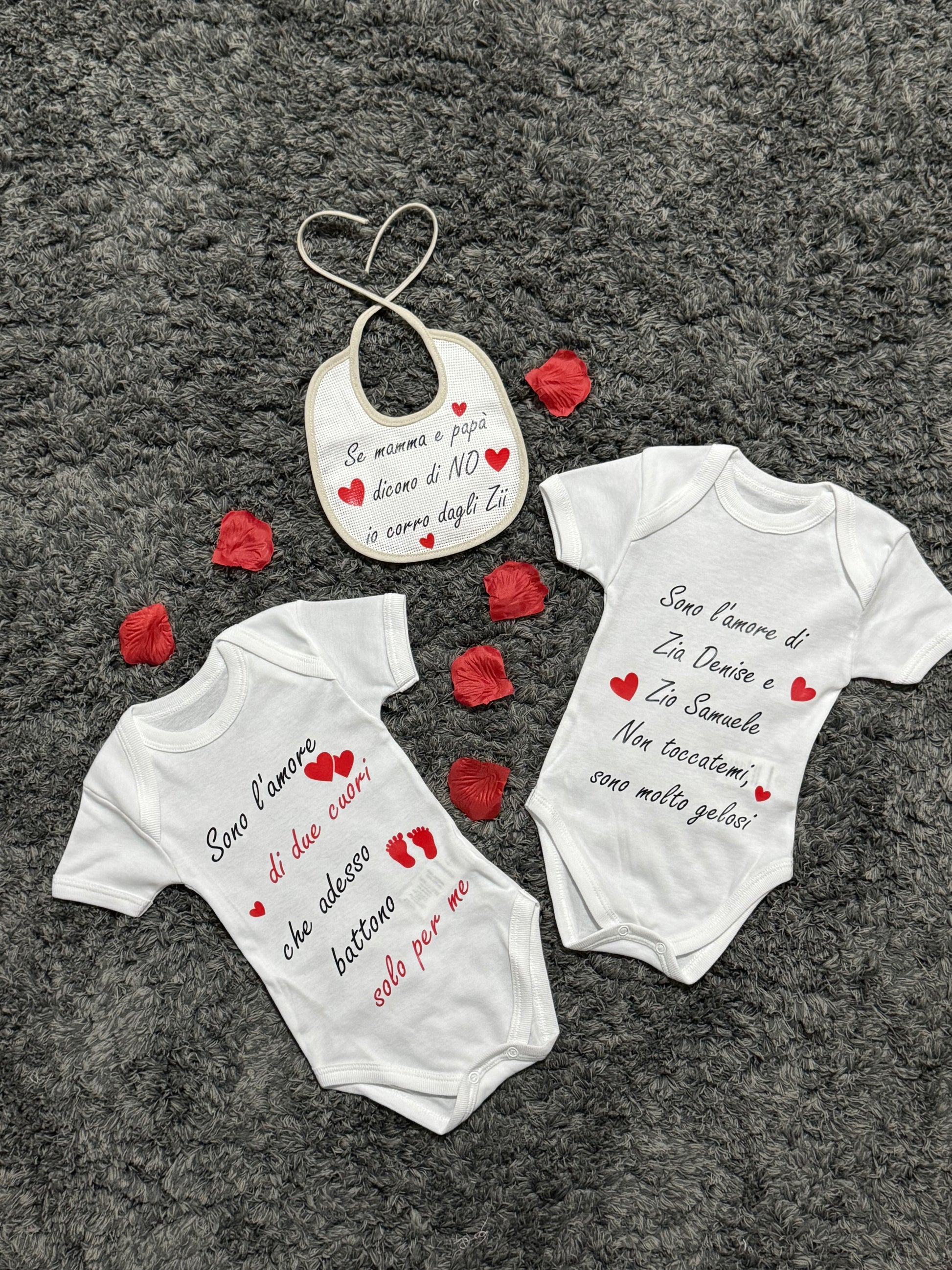 Con un piccolo supplemento, possiamo creare disegni esclusivi scelti da te e stamparli o ricamarli sul body. Decideremo insieme i dettagli in chat per garantirti un risultato perfetto!